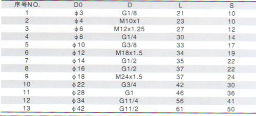 卡套接頭的工作原理是將管插入卡套內(nèi),利用卡套螺母鎖緊,抵觸卡套,切入管子而密封。它與管連接時(shí)不需焊接,有利于防火、防爆和高空作業(yè),并能消Chu焊接不慎帶來(lái)的弊端。因而它是煉油、化工、石油、天然氣、食品、制藥、儀器儀表等系統(tǒng)自控裝置管路中的一種較為先Jin的連接件。適用于油、氣、水等管路連接。制造標(biāo)準(zhǔn):GB3733.1~3765-83公稱(chēng)壓力:25MPa--40MPa適用溫度:≤450℃適用介質(zhì):油、水、氣等非腐蝕性或有腐蝕性介質(zhì)制造材料:304 316 20#配管:Φ4~Φ42的普通級(jí)精度鋼管錐管螺紋:ZGGNPT等卡套接頭概述: 卡套式管接頭由三部分組成:接頭體、卡套、螺母。當(dāng)卡套和螺母套在鋼管上插入接頭體后,旋緊螺母時(shí),卡套前端外側(cè)與接頭體錐面貼合,內(nèi)刃均勻地咬入鋼管,形成有Xiao密封。